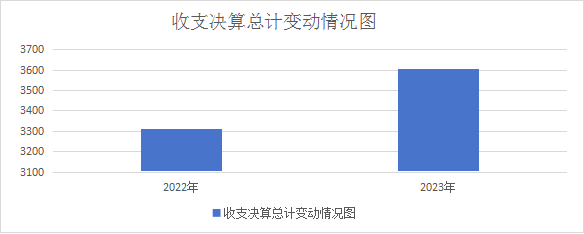 2023年度收、支总计3604.86万元。与2022年相比,收、支总计增加295.52万元,上升8.93%。主要变动原因是预算单位人员增加,预算增加。