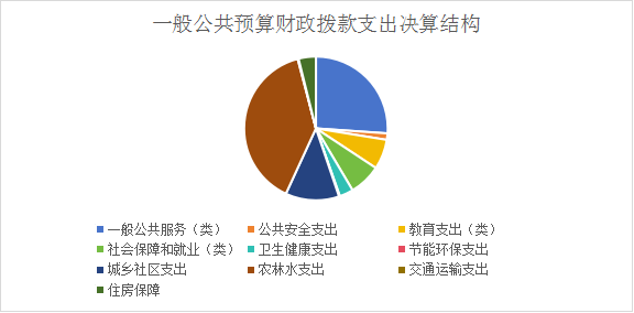 2023年一般公共预算财政拨款支出3604.86万元,主要用于以下方面:一般公共服务(类)支出940.86万元,占26.1%;公共安全(类)支出52.22万元,占1.45%;教育支出(类)242.61万元,占6.73%;社会保障和就业(类)支出259.32万元,占7.19%;卫生健康支出112.37万元,占3.12%;节能环保(类)支出7.16万元,占0.2%;城乡社区(类)支出435.56万元,占12.08%;农林水(类)支出1407.53万元,占39.05%;交通运输(类)支出7万元,占0.19%;住房保障(类)支出140.24万元,占3.89%。